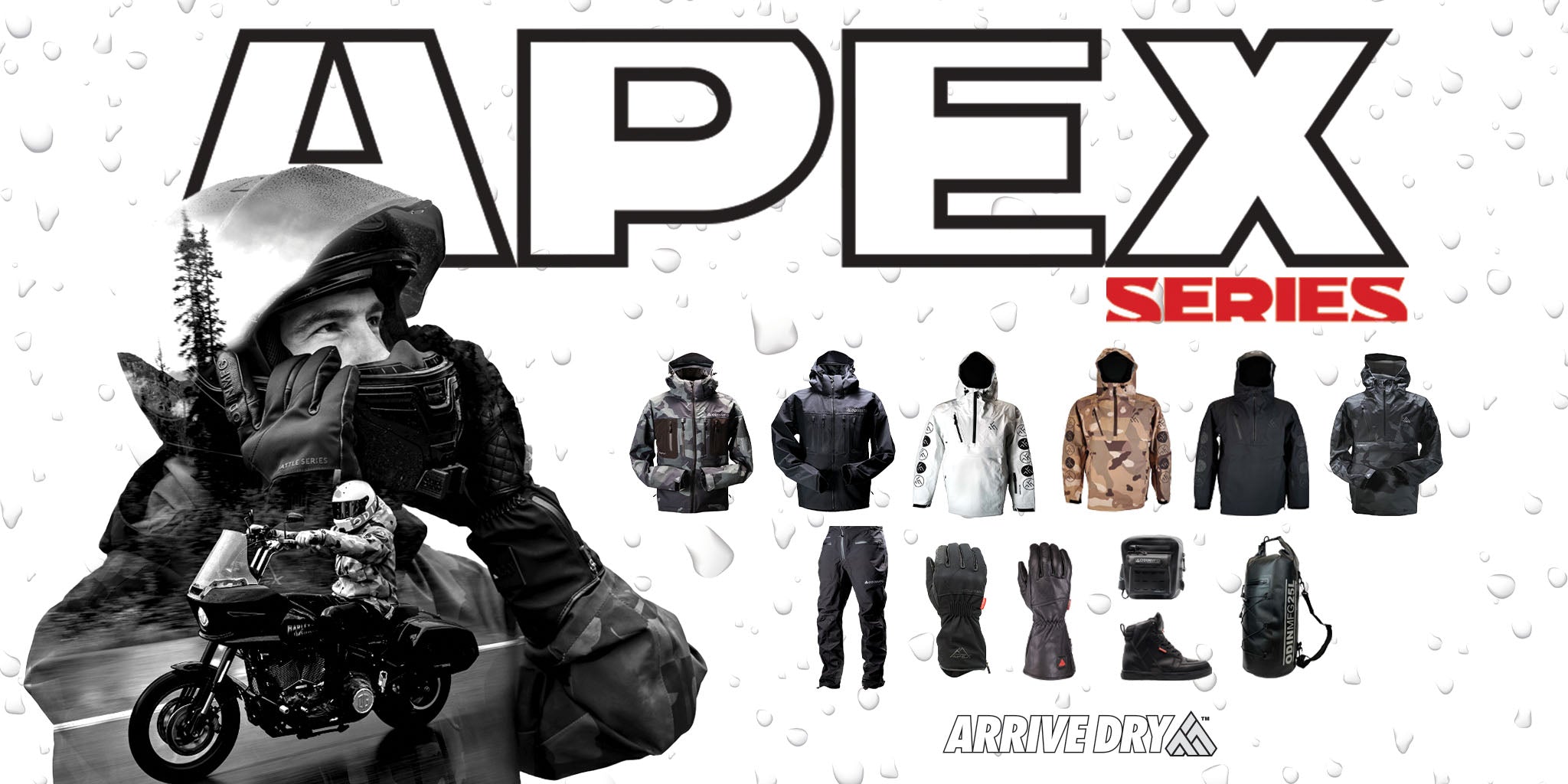 Bring it on. We don't call it the APEX Collection for nothing. Arrive dry in the best rain gear in the game. Spend more time riding your motorcycle and less time checking weather apps.