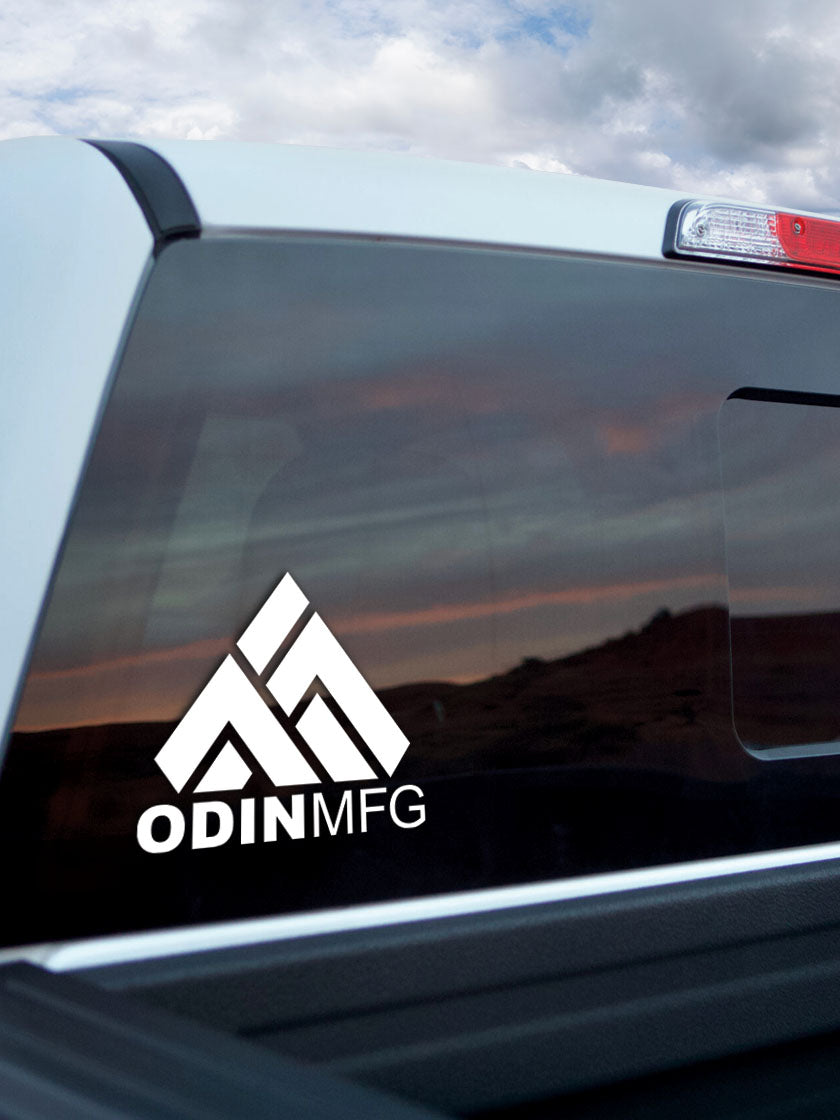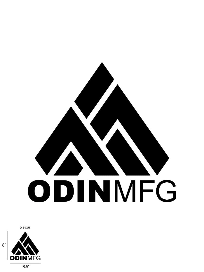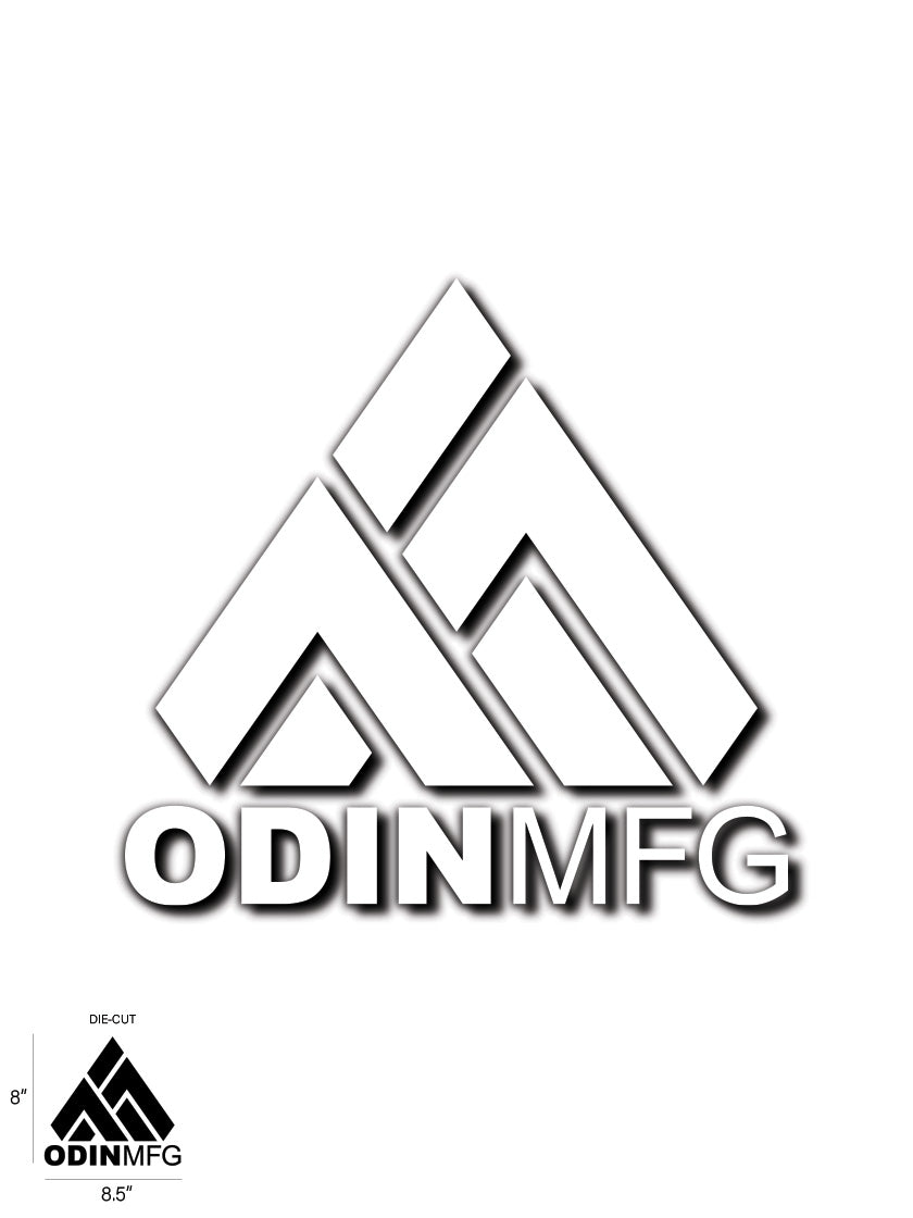 Large Classic Odin Mfg Stacked Logo in black or white die cut decals