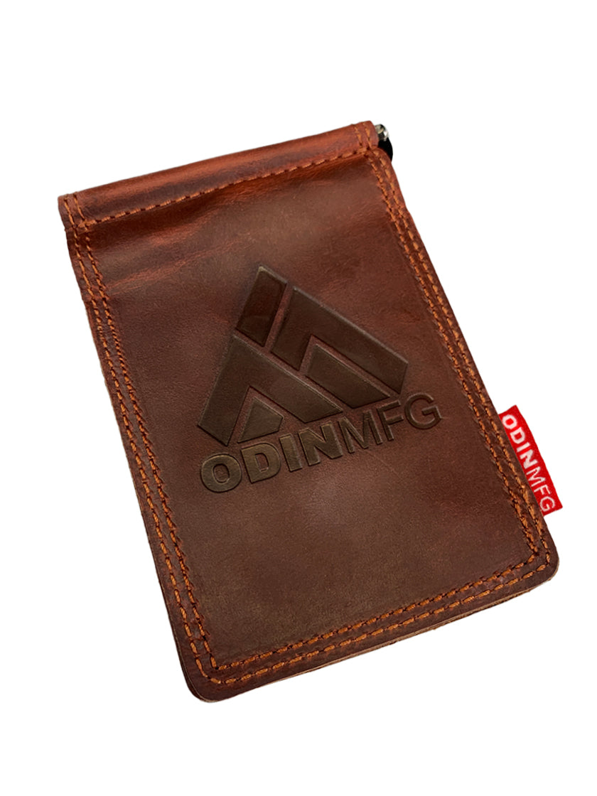 The Stacked Logo Slimline Leather Billfold Wallet carries everything you need and nothing you don't. Constructed using high-grade aniline 4oz oil skin leather, the slimline features a money spring clip to securely hold your bills as well as inward-facing Odin Diamond pockets to ensure your cards don't slide out. The wallet initially holds singular cards tightly however it can accommodate approximately 16+ cards as the leather stretches to your needs.