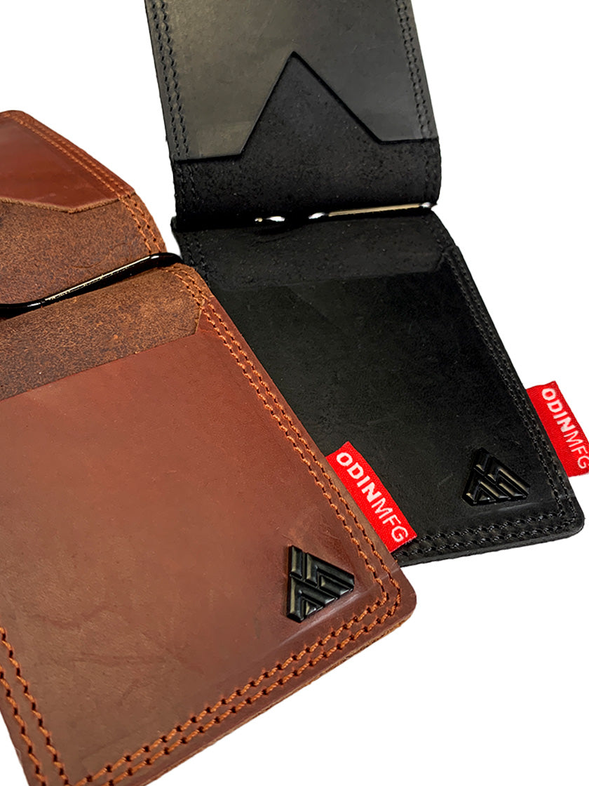 Finished with a clean timeless debossed Odin Logo on the outer face and an Odin Black Metal Diamond Badge inside, the Slimline easily fits a front pocket and is double stitched to last decades.