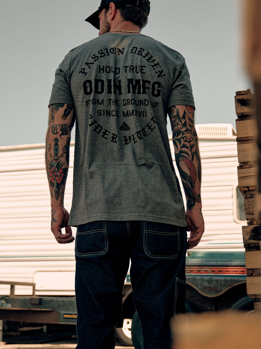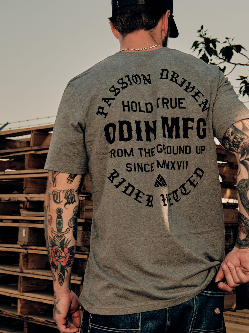 Whether you're gearing up the open road on your motorcycle or hitting a night on the town you'll be covered with style in the Hold True t-shirt.