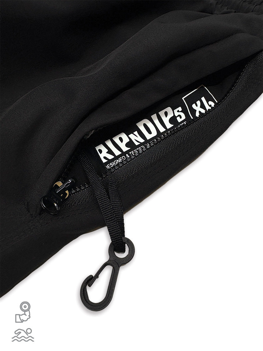 The Rip N Dips pack down small and fold into their mesh pocket to keep handy in your saddlebag. To prevent that annoying suction to your leg when leaving the water we designed 6 small pressure release holes into the leg to keep them from sucking tight as you exit the water. Along with a fast drying technical fabric and an athletic mid length cut, they also have a zippered pocket with a key loop to keep valuables like room card, locker key and change from falling out of your pockets while in the water.