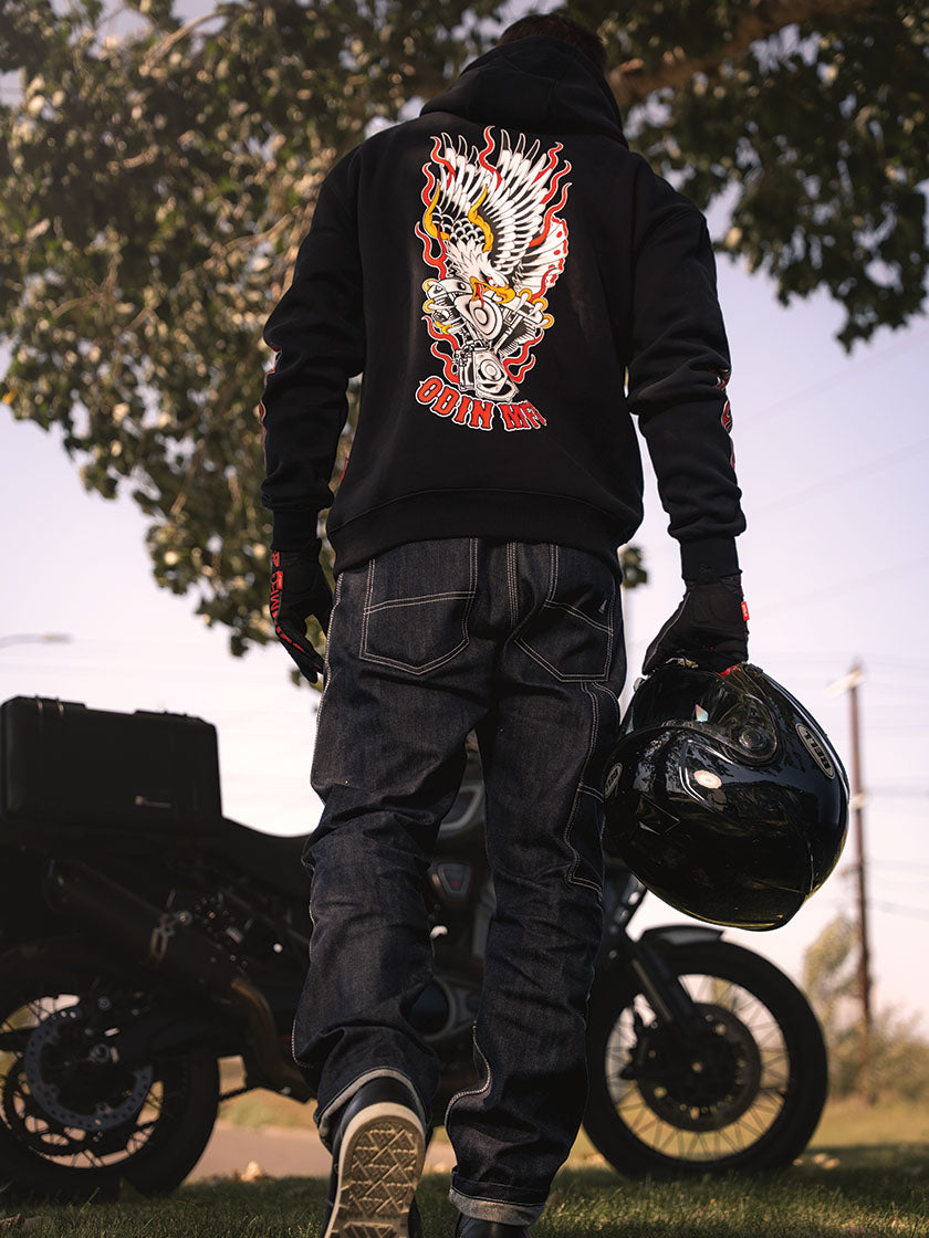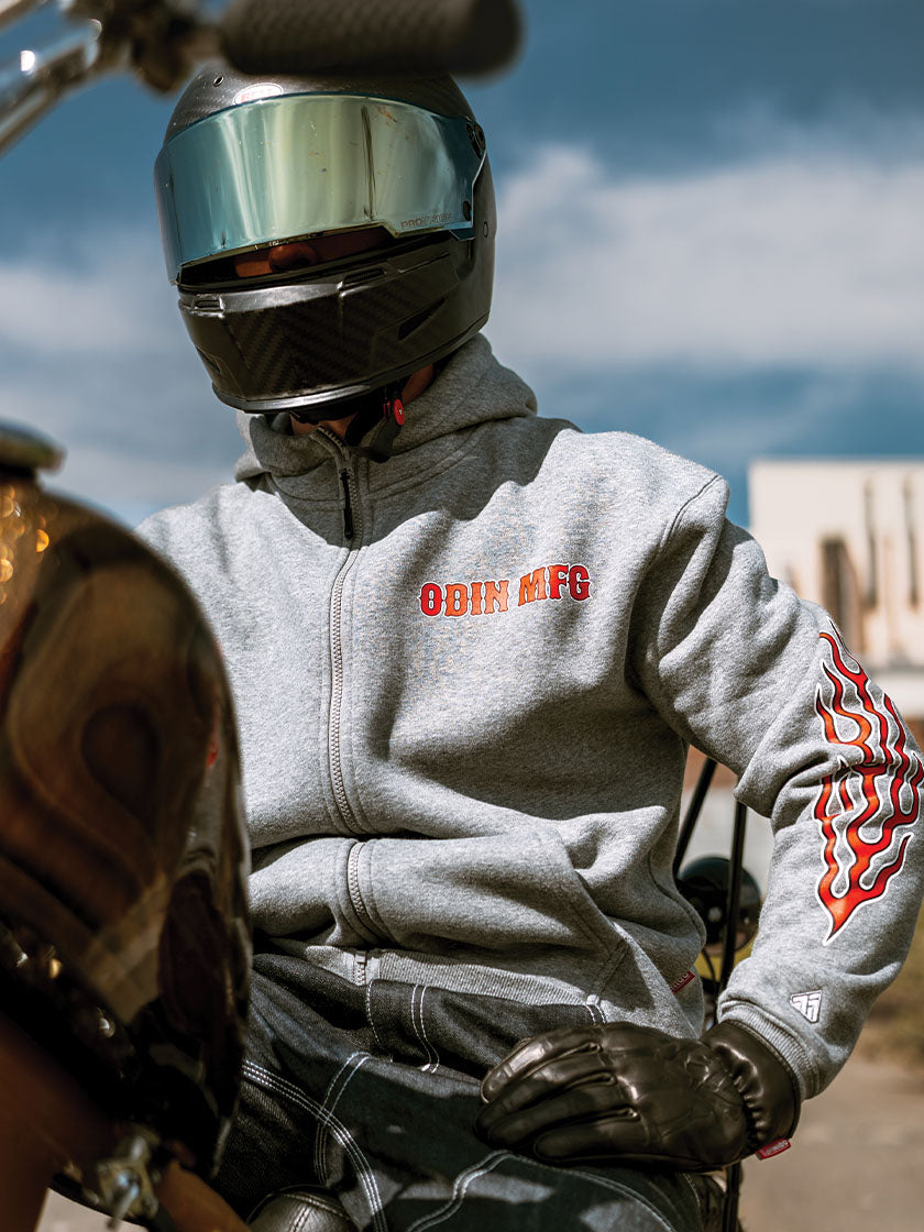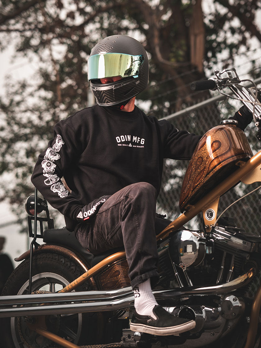 At Odin Mfg, we design hoodies and sweatshirts that fit the motorcycle lifestyle from the ground up. Our moto hoodies are more than just gear — they’re built for the ride, the road, and the downtime in between. Whether you’re looking for a heavyweight motorcycle hoodie to layer under your riding jacket, a casual crewneck sweatshirt for cooler nights, or a zip-up hoodie to wear in the garage, Odin delivers style and durability in every stitch.