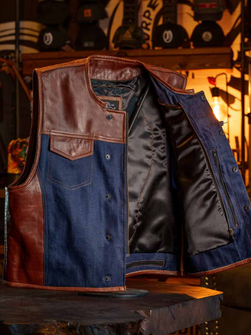 Odin Mfg Factory Customs are one-off motorcycle vests with material and color combinations our team has created. These vests are typically built to order, but are available now and ready to ship in this limited run. Get it before it's gone!