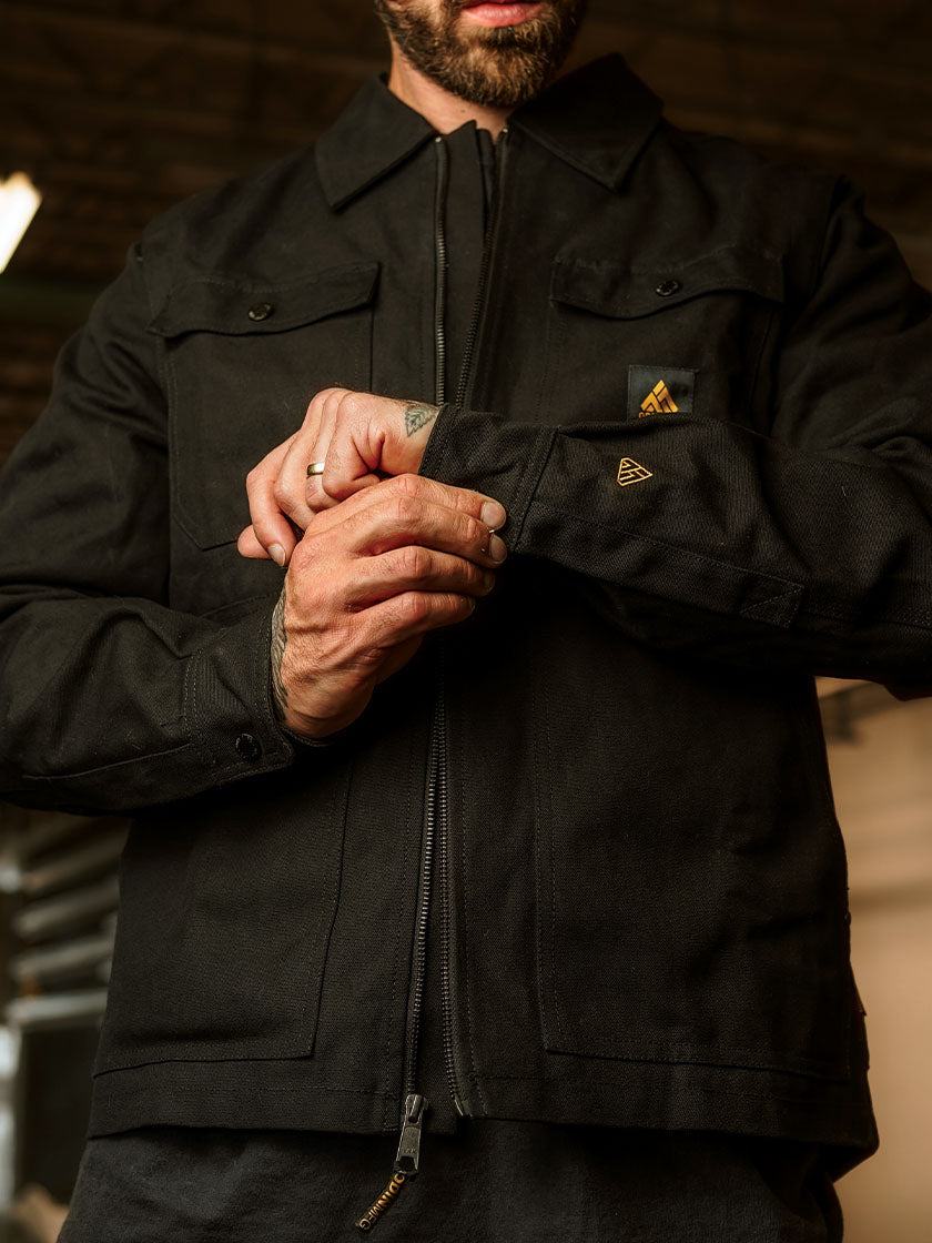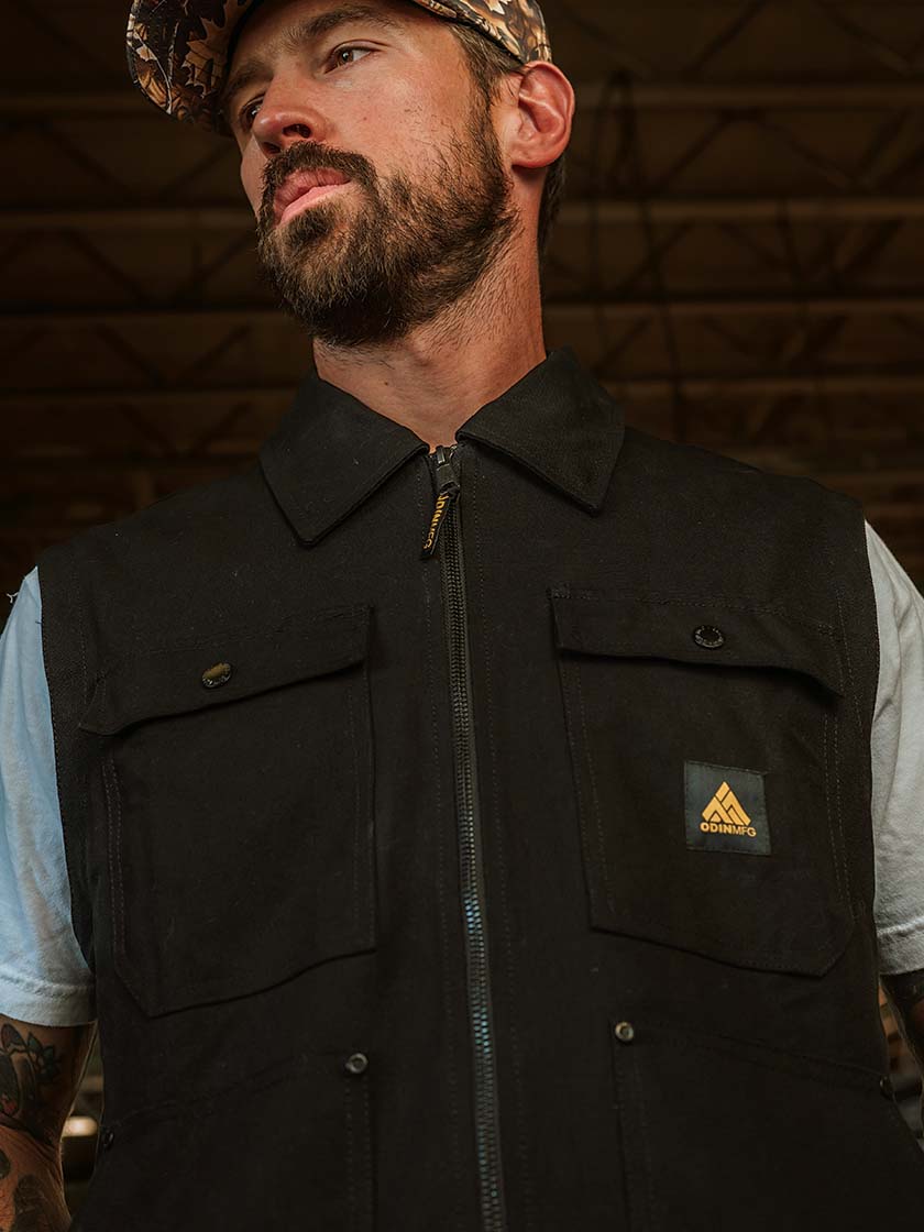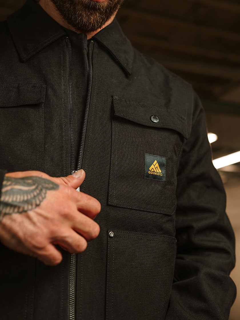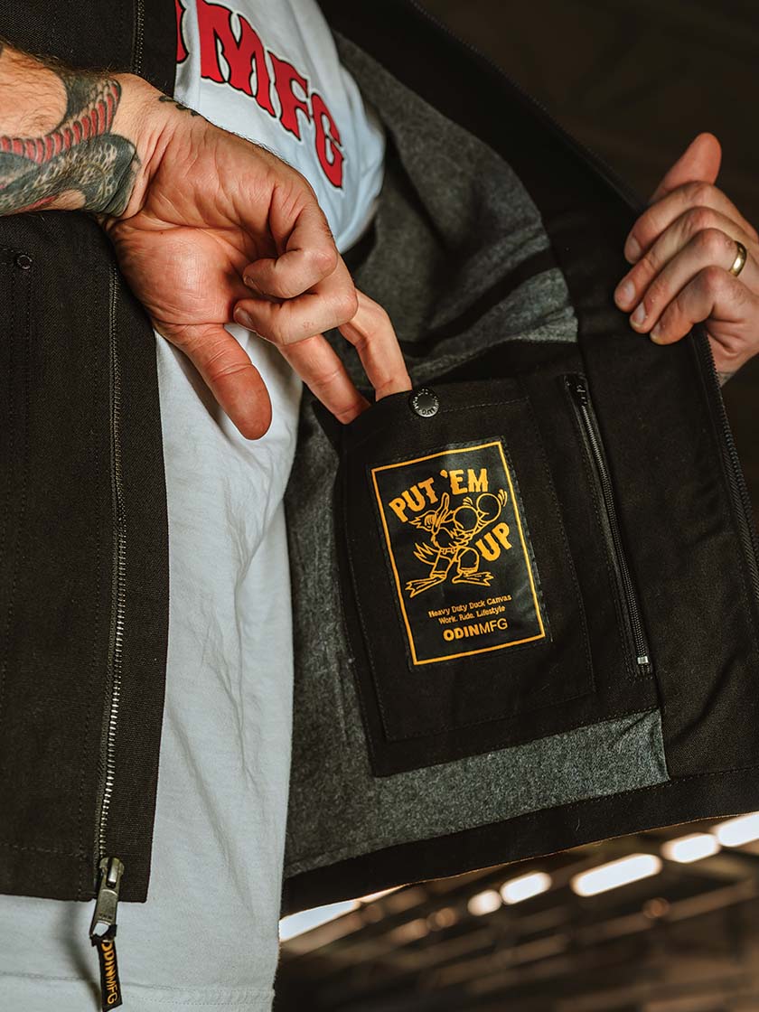 The Odin Mfg Duck Canvas Shop Jacket is a long-standing Odin staple built from heavyweight black duck canvas that delivers dependable abrasion resistance and all-day comfort. Details like the reinforced seams, riveted oversized from pockets, multi inner stash pockets and the newly added removable sleeves that convert into a canvas riding vest make this jacket perfect for days in the garage, ripping the open road, or working out in the field. Engineered to function in a work/ride lifestyle, The Duck Canvas Shop Jacket is a multifunctional premium addition to your kit.