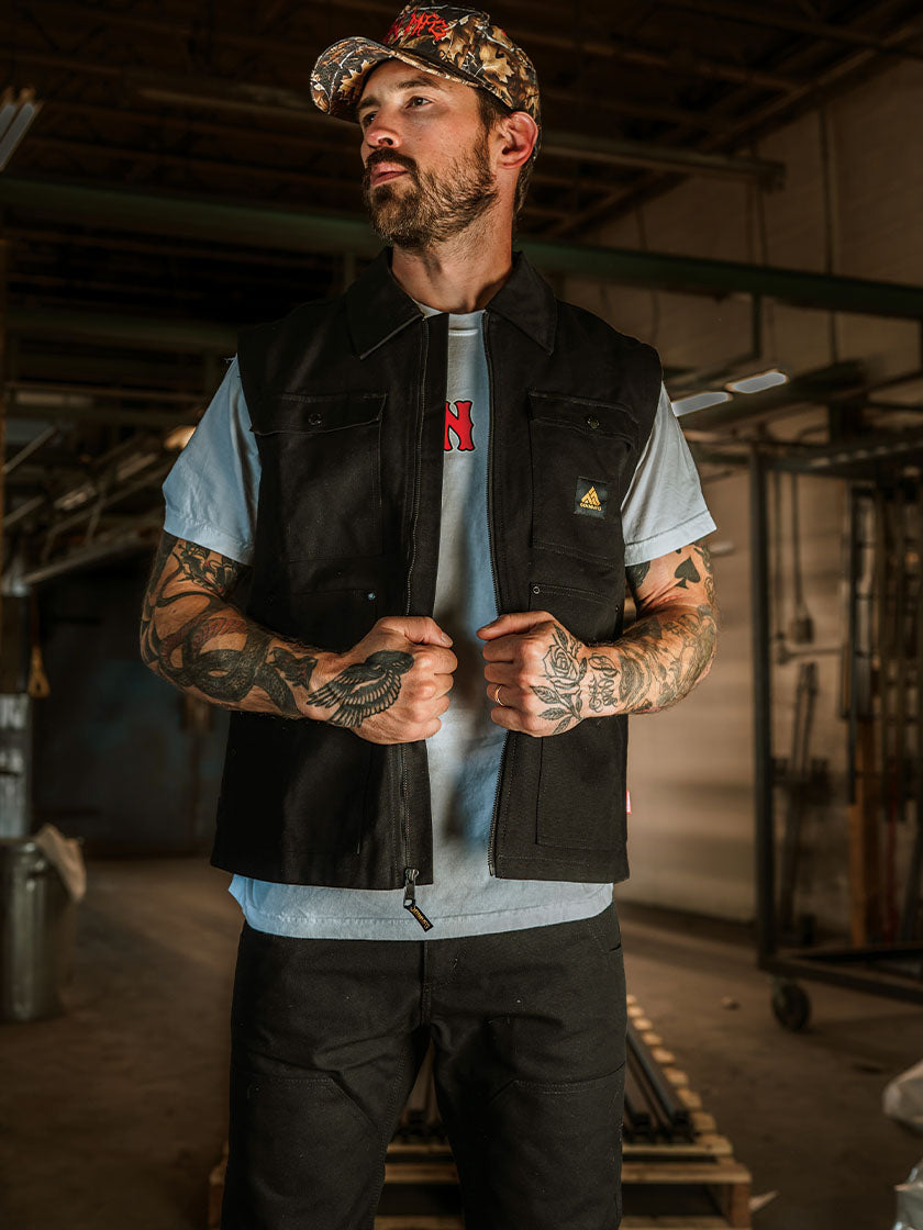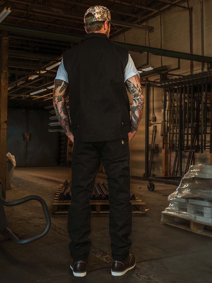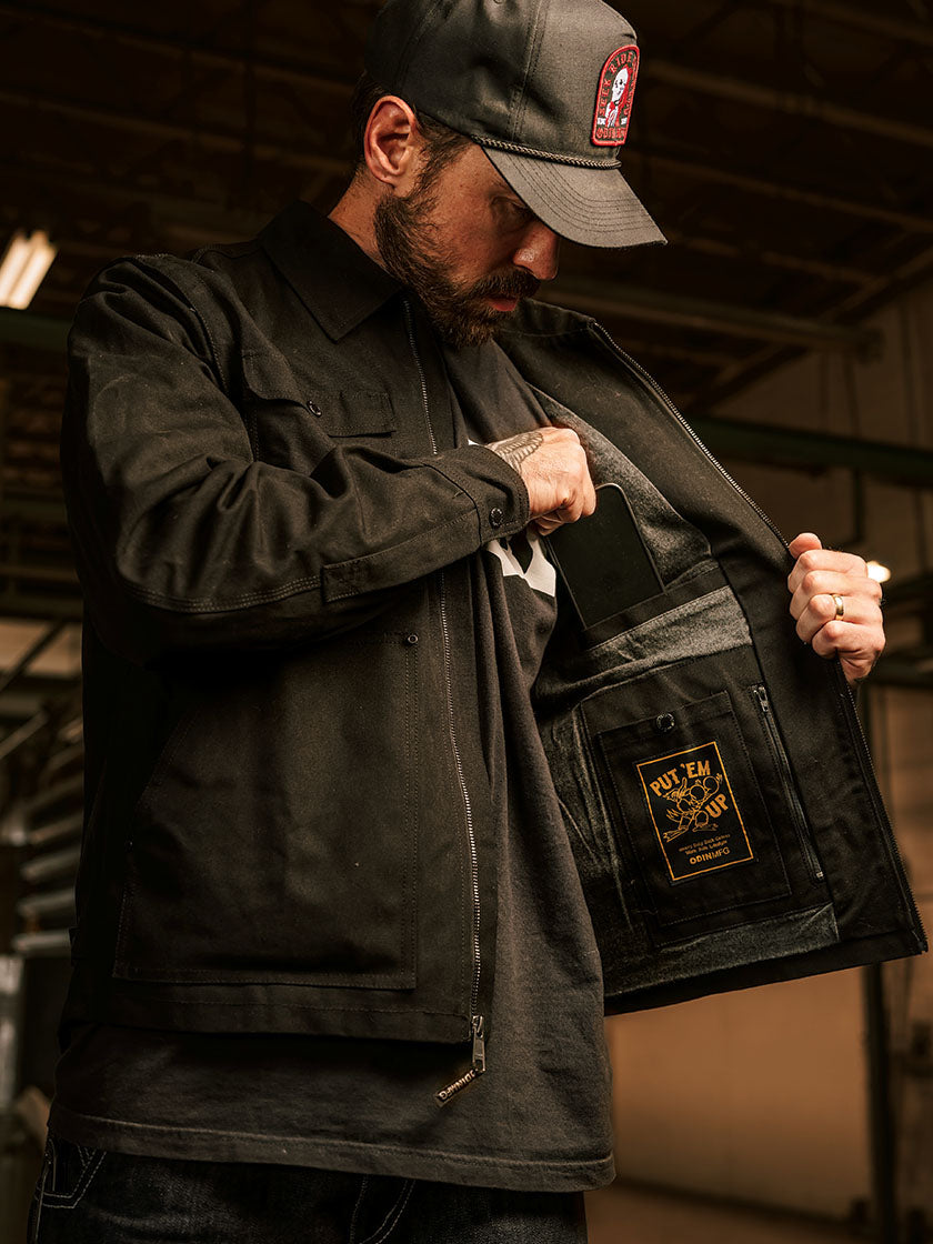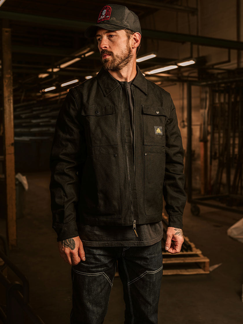 The Odin Mfg Duck Canvas Shop Jacket is a long-standing Odin staple built from heavyweight black duck canvas that delivers dependable abrasion resistance and all-day comfort. Details like the reinforced seams, riveted oversized from pockets, multi inner stash pockets and the newly added removable sleeves that convert into a canvas riding vest make this jacket perfect for days in the garage, ripping the open road, or working out in the field. Engineered to function in a work/ride lifestyle, The Duck Canvas Shop Jacket is a multifunctional premium addition to your kit.
