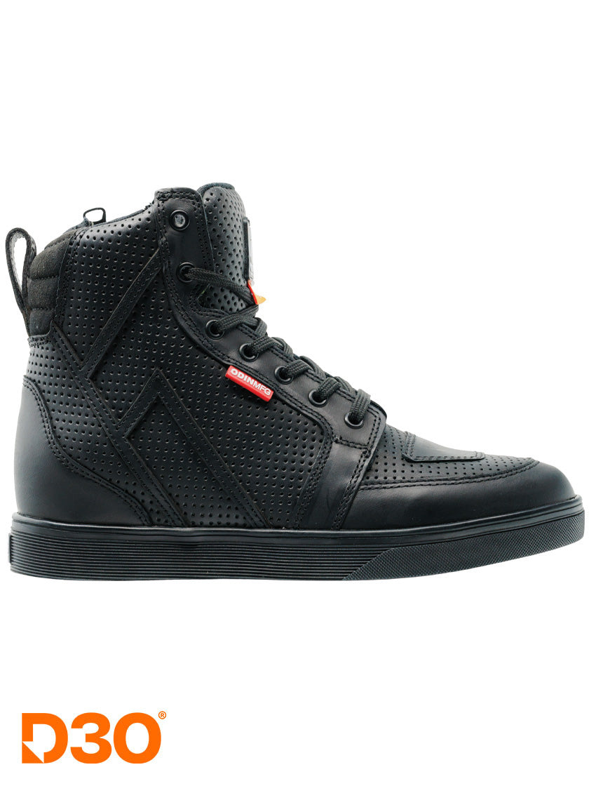 The Odin Mfg Apex Aero D3O® Motorcycle Shoes are born from years of design and rigorous testing. We set out to fuse the demands of a true rider with our needs for everyday wearability and style. The Apex Motorcycle Shoes have undergone multiple redesigns, significant abuse, and aesthetic refinements to create a totally functional rider-focused shoe. They feature a perforated main hull construction that keeps the air flowing and your feet comfortable all day long.