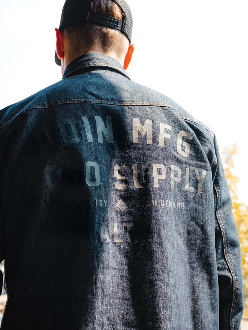 Printed on the back, dark and subtle, Is our Odin. Moto Supply graphic.