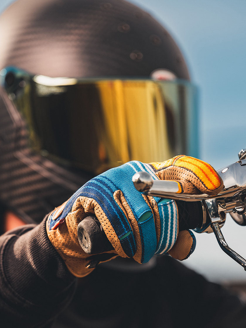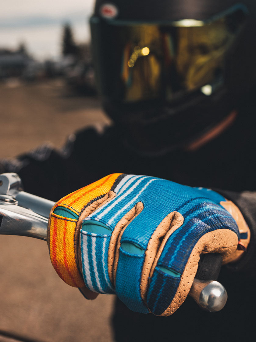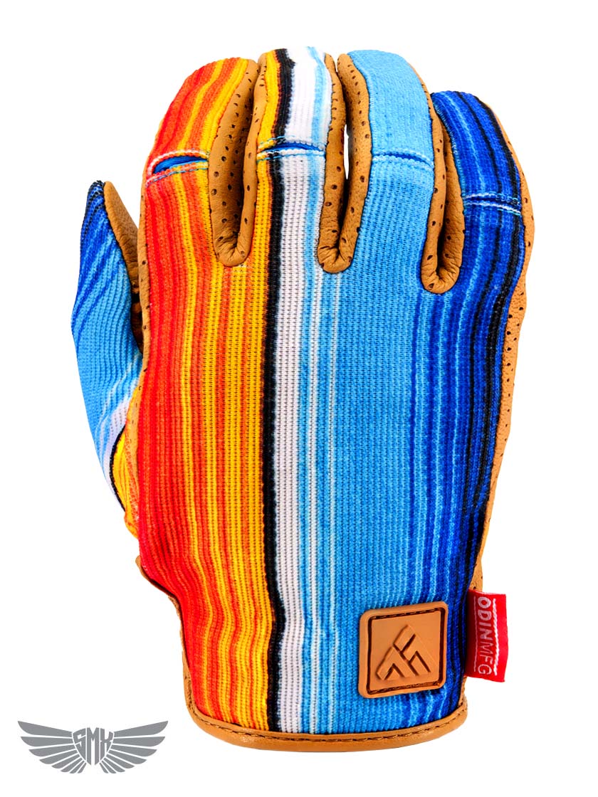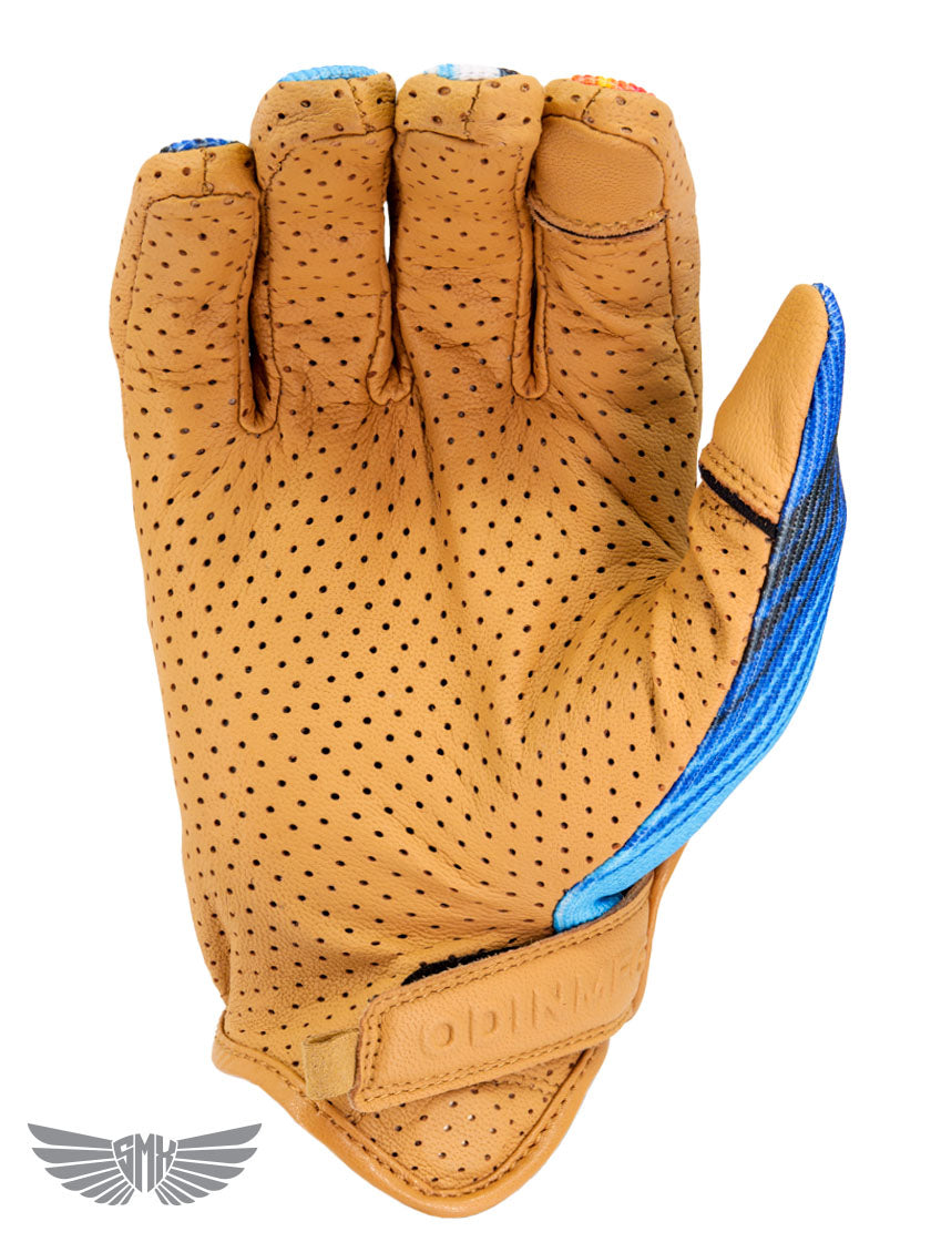 The Baja SMX motorcycle gloves made famous by Shadetree Surgeon from Brapstar are back and better than ever. Designed to look, feel, and function like motocross gloves, but built stronger for the streets. New for '25 is a higher abrasion resistant back panel that levels up the durability, richer sublimation graphics, 3d rubber logos and premium perforated tan aniline leather palms making these the best SMX batas we've made yet for bombing the highways