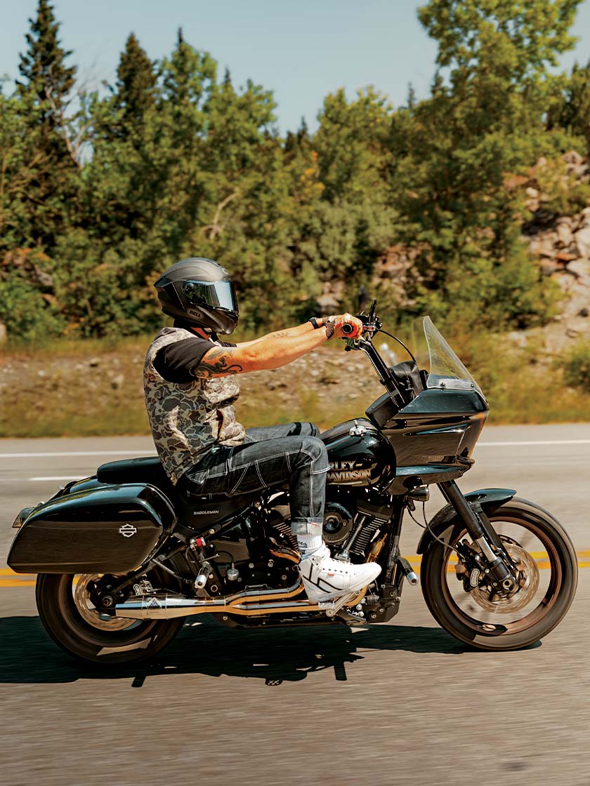 A molded neoprene cuff improves tactile function and dexterity, paired with a single-layer premium Amara 3D Palm™ and articulated knuckle slits for protection and comfort. The adjustable hook-and-loop wrist closure ensures a secure fit, while Odin Mfg’s signature flip-tip pointer finger and thumb maintain touchscreen compatibility. Integrated tank magnets provide easy storage at stops.