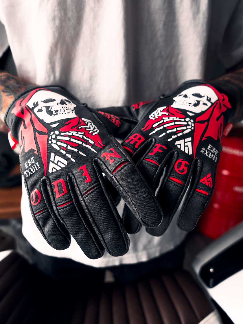 The Reaper SMX Glove artwork is Inspired by these hand-painted works that flew unrelenting into the unknown. The Reaper is a tribute to the nose art of our history and stands as a reminder of how fortunate we are in this modern day.