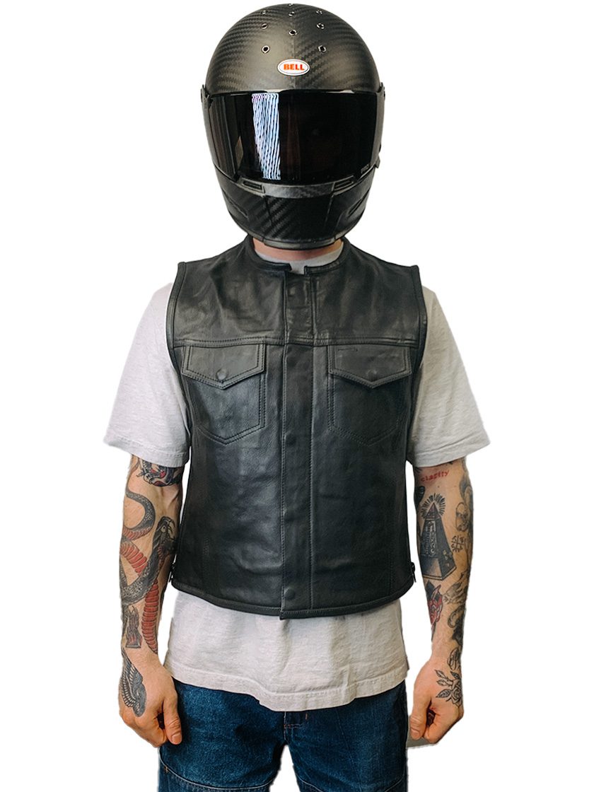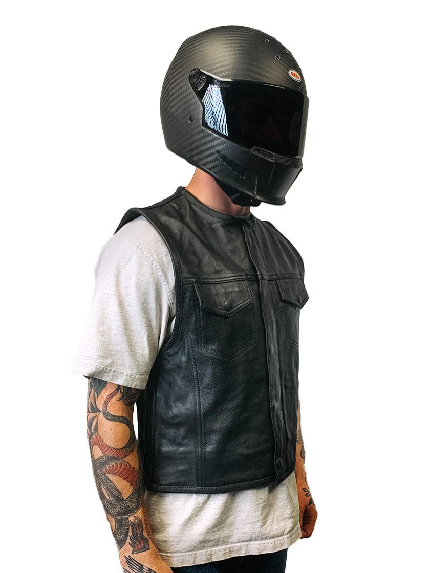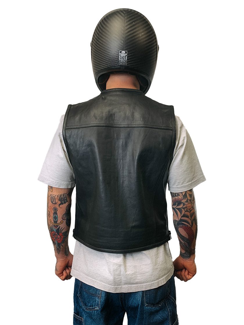 The Standard Issue Motorcycle Vest is a performance rider-designed vest. We applied countless hours of seat time and years wearing vests to build the blueprint on how a modern motorcycle vest should fit and feel. With our modernized fit, this motorcycle vest is designed with all the materials and features of a custom vest without the custom cost. It blends the perfect mix of high-end perforated leather and lightweight cordura for breathability and rider comfort. Side expansion zippers allow riders to fit cold weather gear underneath with ease. We've added a zip access liner for sewing patches or to store your fat strap when it's not in use and YKK zippers.