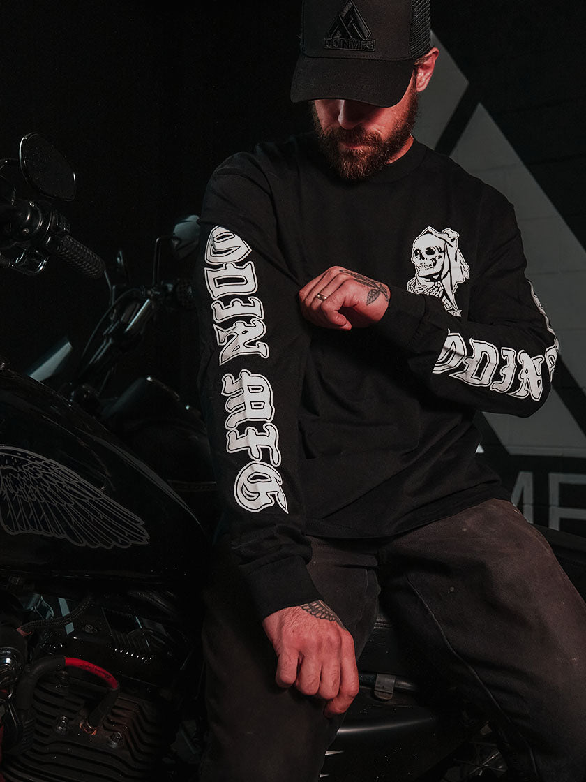 Bigger and bolder. Freshen up your closet with the Reaper Long sleeve In Black or White.