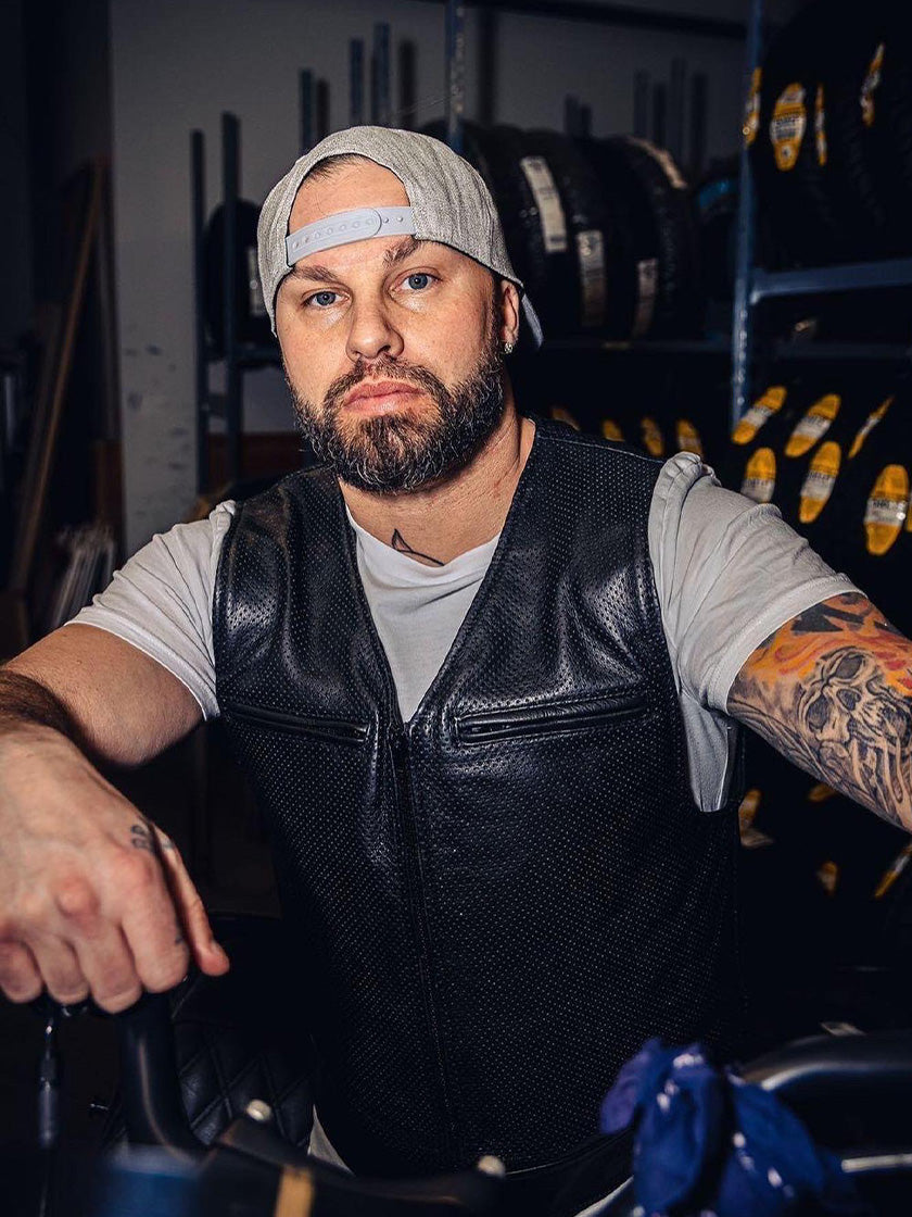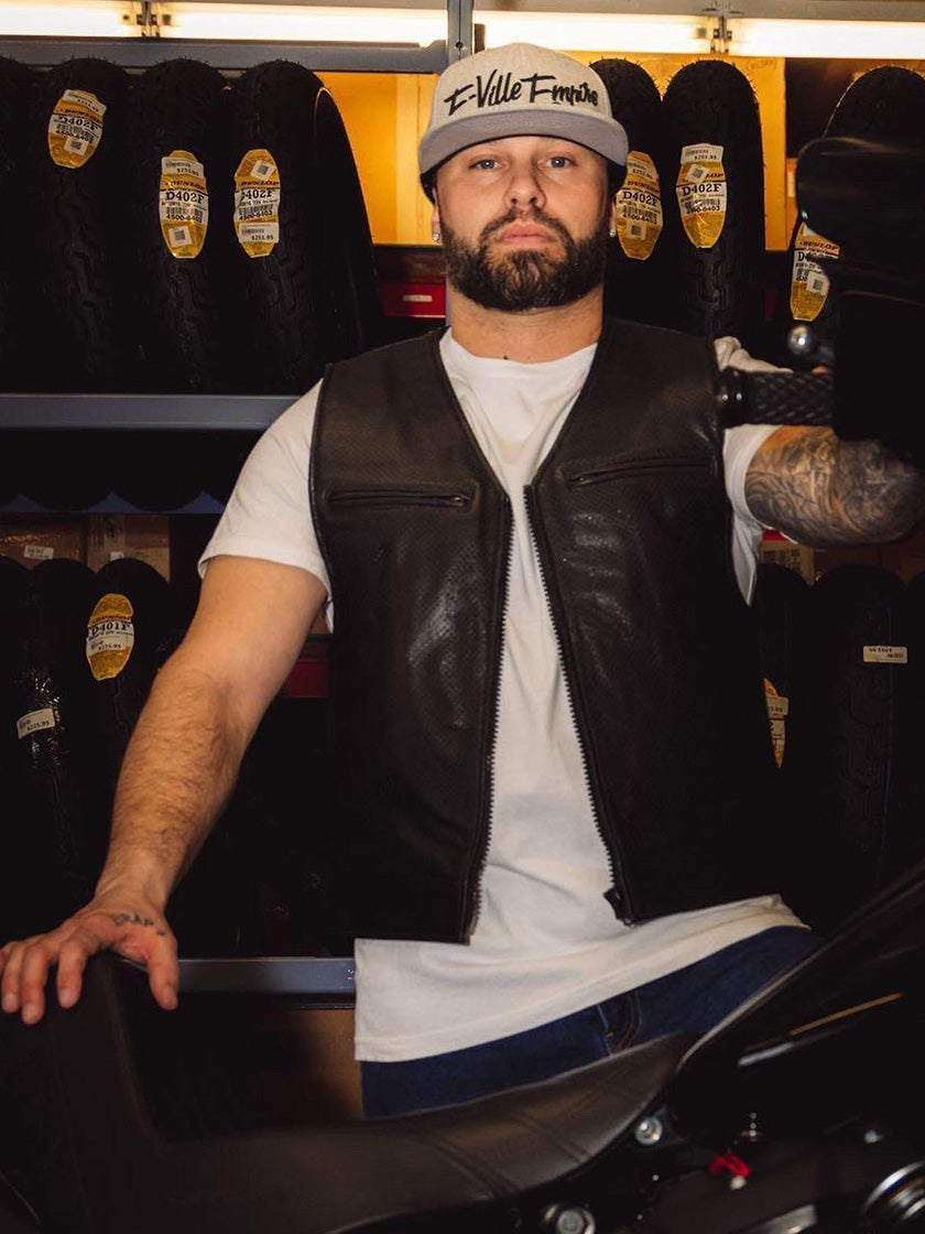 The "V" motorcycle vest is inspired by the roots of our culture, and those who paved the way. Reimagined with our modern take to make it as progressive as it is traditional. The "V" neck vest features a shallow 55-degree V that carves out added neck room and extra weight; as well as, a rider-out-designed shorter length that makes this a pure motorcyclist vest built for hours of seat time and all-day wearability. Like all our vests, they're designed to function in unison with the rider and won't rise up into your chin when seated. Complete with a zip-in 2" wide expansion strap they provide room for layering up on cold rides. The "V" is built from high-end leather and fits high and tight the way a true riding vest should fit.